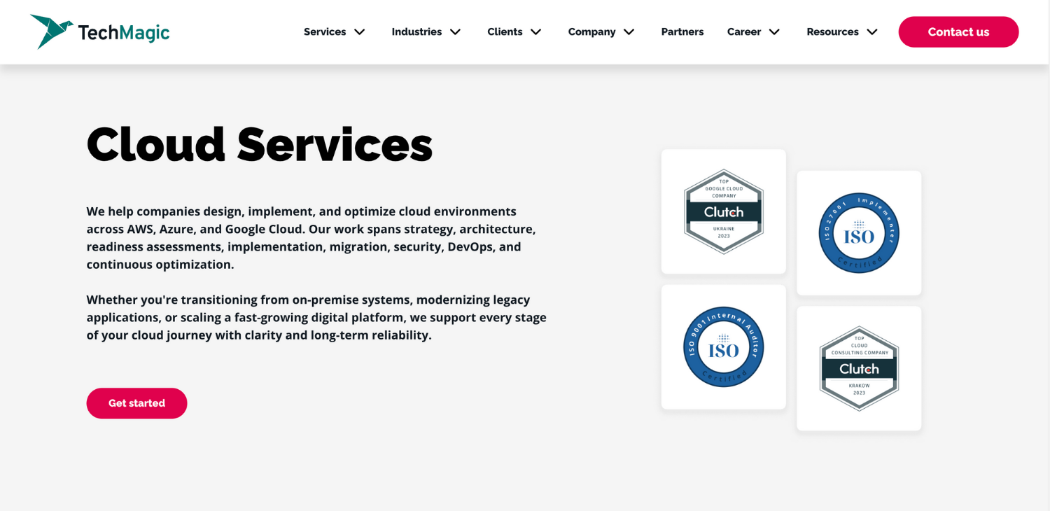 TechMagic delivers comprehensive cloud migration services that combine migration execution with application modernization, cloud security, DevOps automation, and FinOps governance. The company supports organizations moving from legacy systems, private cloud, and hybrid environments to AWS, Azure, and Google Cloud.